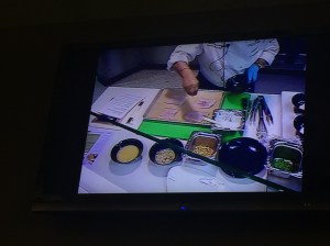 Chef rolls out his pistachio-crusted whitefish for an appreciative crowd