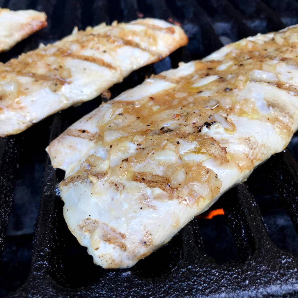 I grilled the fillet, meat-side down, for around a minute. Then I flipped to the skin side and added the rub to the meat with a brush. Finally, I cooked until done, about 10 minutes per inch of meat.